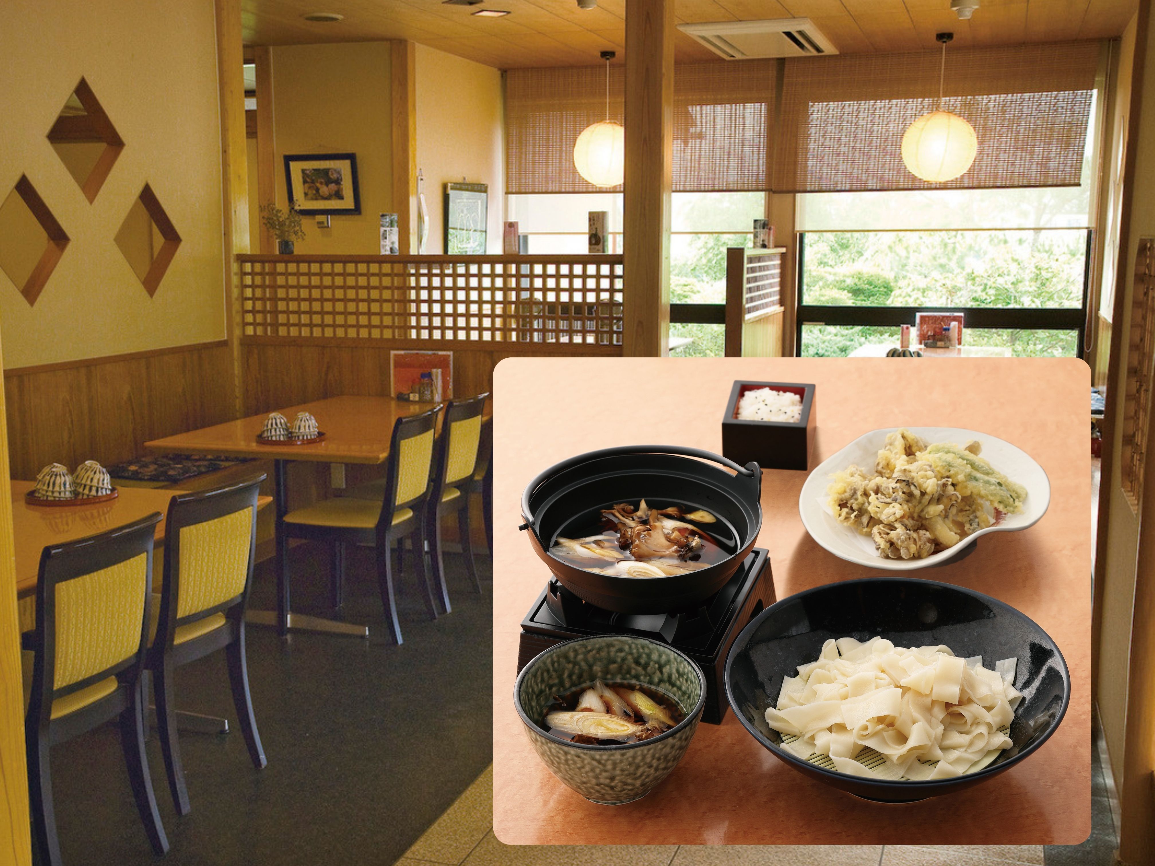 ▼観光センター隣接の「ひもかわさくら亭」では、生のひもかわうどんを提供しております。